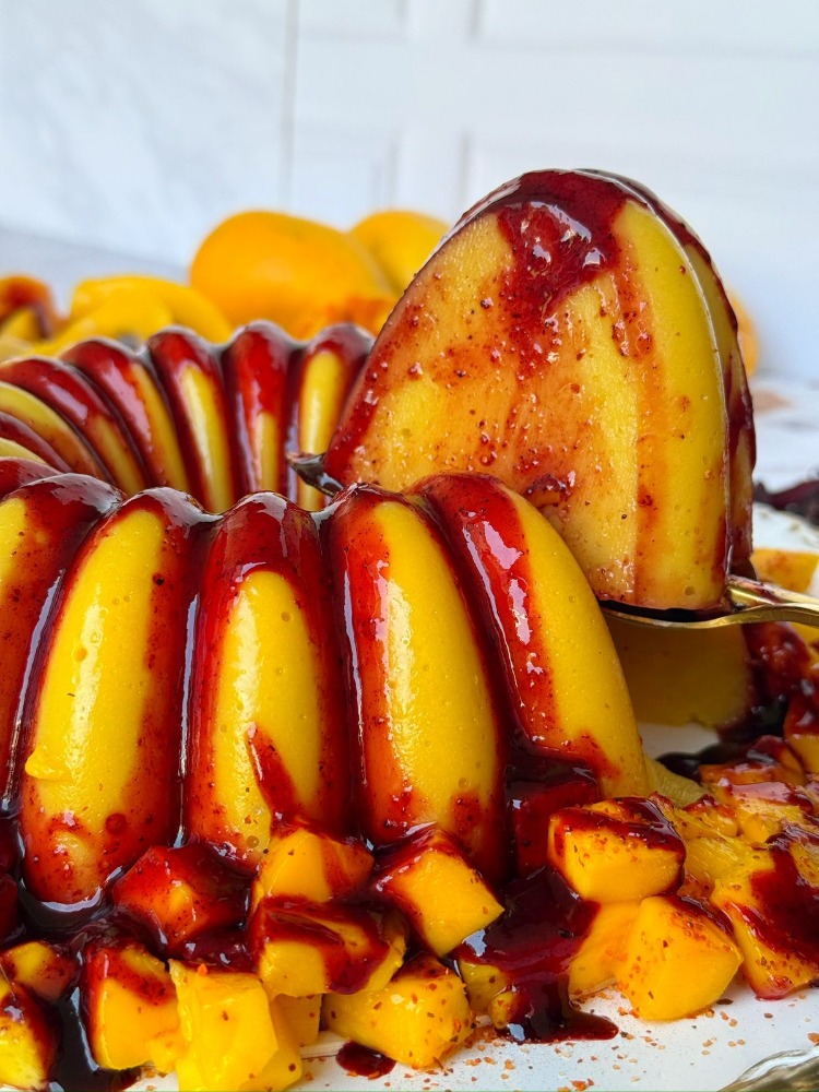 Ingredientes Gelatina: Mango, Bebida de Almendra, Alulosa, Grenetina, Ácido Cítrico.